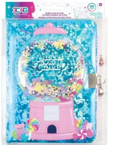 BUBBLE GUM GLITTER LOCKING JOURNAL WITH PEN (KINA)