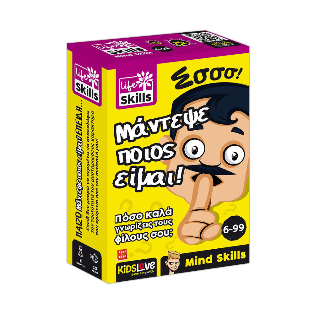 ΠΑΙΖΩ ΜΑΝΤΕΨΕ ΠΟΙΟΣ ΕΙΜΑΙ ΕΠΕΙΔΗ... δεν μπορώ να περιμένω να ανακαλύψω την ταυτότητα των μυστηριωδών χαρακτήρων που κρύβονται από τον αντίπαλό μου! Πότε παίζω «Μάντεψε ποιος είμαι»; Διαλέγω μία ή περισσότερες κατηγορίες, σχεδιάζω έναν ή περισσότερους μυστηριώδεις χαρακτήρες και ελπίζω ότι η τύχη θα με βοηθήσει: ποιος ξέρει πόσες πνευματώδεις ερωτήσεις θα πρέπει σκεφτώ για να βρω τους χαρακτήρες που κρύβονται από τον αντίπαλό μου; Ωχ όχι! Η μάρκα μου δίνει μόνο μία ερώτηση!… Πρέπει να σκεφτώ έξυπνα!