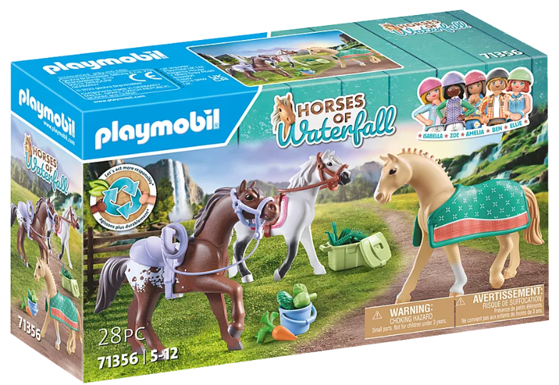 Το Μεγάλο Ράντσο (κωδ.: 71351-πωλείται ξεχωριστά) έχει αρκετό χώρο για να φιλοξενήσει πολλά άλογα. Σήμερα, καταφθάνουν από τη διπλανή πόλη τρία πανέμορφα αγωνιστικά άλογα έτοιμα να ζήσουν νέες περιπέτειες. Κάθε άλογο διαθέτει τα δικά σου αξεσουάρ ιππασίας.