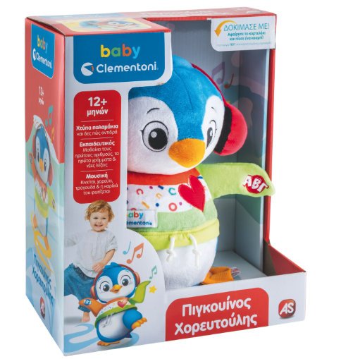 Χόρεψε μαζί με το πιγκουινάκι στον ρυθμό της μουσικής, χτύπα παλαμάκια και δες πώς αντιδρά! Μέσα από το παιχνίδι, το παιδί θα μάθει τους πρώτους αριθμούς, τα πρώτα γράμματα και λέξεις που σχετίζονται με αυτά, διασκεδάζοντας με τα αστεία τραγουδάκια και εφέ φωτισμού. Χτυπήστε τα χέρια σας και δείτε τι θα συμβεί! Ο πιγκουίνος θα αρχίσει να κινείται και να χορεύει, καλώντας το παιδί να τον ακολουθήσει. Ένα παιχνίδι που διεγείρει την ανάπτυξη των κινητικών δεξιοτήτων, της γλώσσας και της σχέσης αιτίας-αποτελέσματος.
